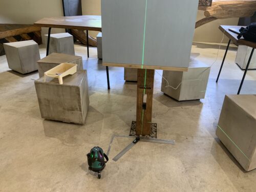 設置希望場所と、煙突の割り付けから貫通部分を施工してほしいおおよその場所を割り出し、大工さんに施工が可能か確認の後取り付け場所を確定。