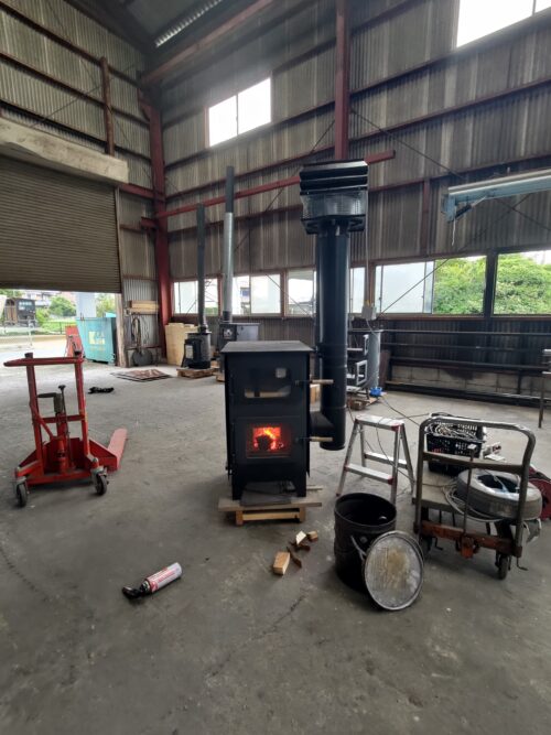 そして煙突の下調べが終わったら、工場に帰って排気ファンの燃焼確認を実施。