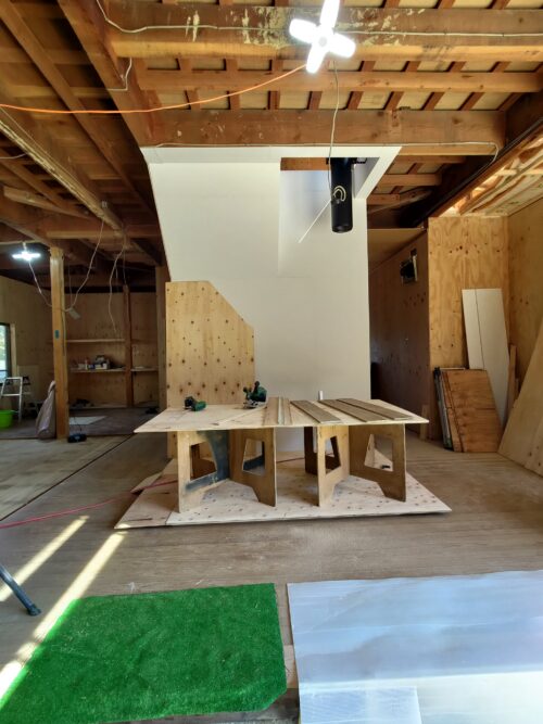 今は炉台の上が作業エリアになっているけど、ここへ鉄板を敷き込んで本体を設置する予定。