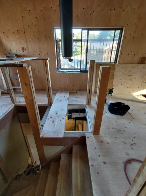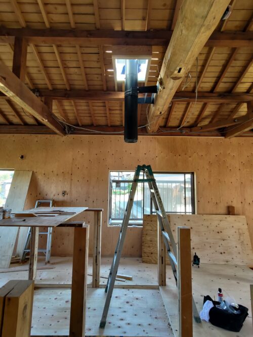ちゃんと資料も作って意見の一致も図ったから問題なんて発生するはずが無いでしょう。となんの不安感も持たず初日は煙突部材の事前搬入と大工さんと最終の打ち合わせを行い翌日の工事に備えました。