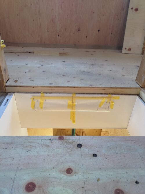 開口部のセンターに煙突が来るように固定すれば、あとは板金屋さんへ仕事を引き継げるので急ぎはしないけど手直しが発生しない様慎重に取り付け。