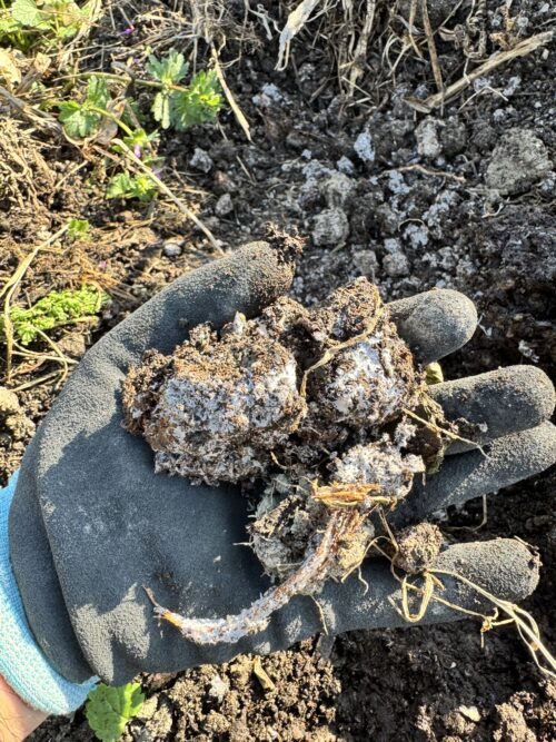 菌にに有機物を分解してもらうのは肥料だけにとどまらず、施肥を終えた畝に酵母菌や納豆菌、乳酸菌を200倍に薄めて散布する事でコンクリートの様に硬かった畑の土がとても柔らかく変化してゆくのがとても面白い。