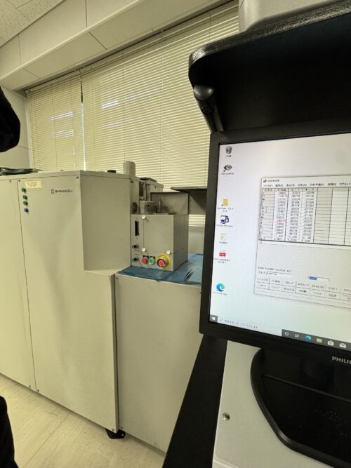 これが今回予約した検査機器で、1時間あたり費用が発生。左側の装置にテストピースをセットして右側のモニターにデータが表示されます。