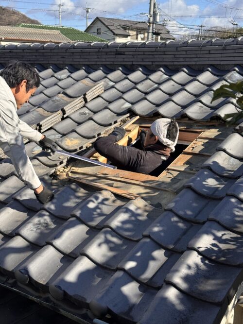 2日目は大工さんの屋根開口工事から1日がスタート。