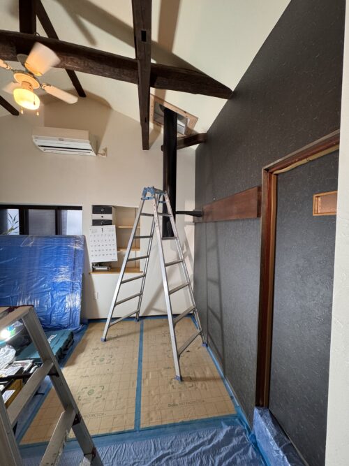 あとは外気導入の穴を壁面に貫通して、遮熱壁を置き、本体を設置すれば室内造作は完了となる。