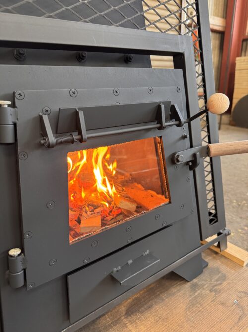 給気はドアの吸気口がメインで、空気のアシストを行う場合下の灰受けを少しずらすとロストルから空気が入って勢いよく燃焼します。