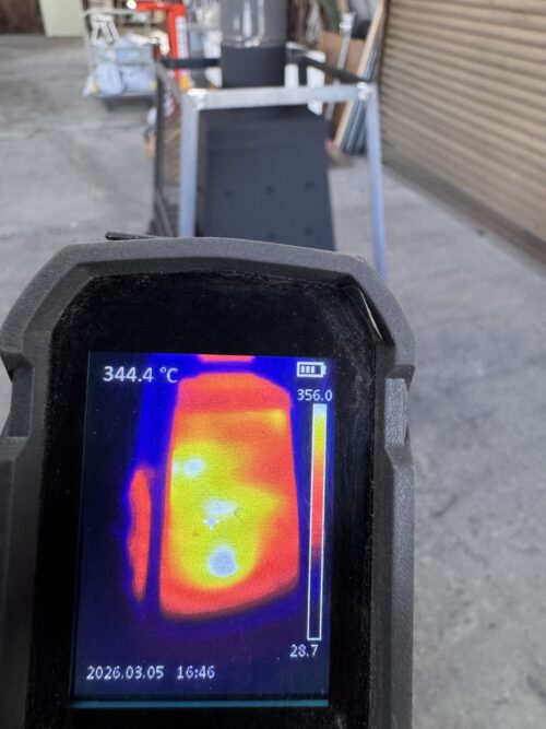 サーモカメラで設計の検証を行ったところ、概ね狙い通りの性能が出た事を確認して安堵。