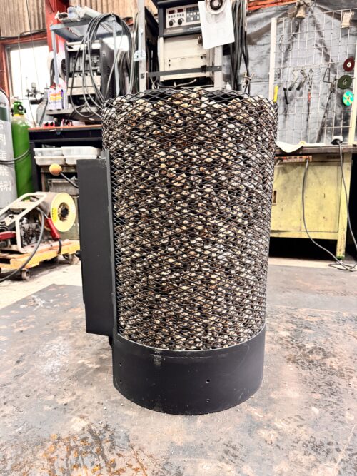 撤去後、購入した花崗岩を金網に充填して検証の準備を完了した。