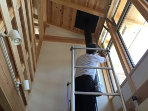 屋根に開口があれば、工場のダクト設置工事と手順が似ていると思いました。ただし、薪ストーブ特有の煙突の取り回しや、家屋の知識等、簡単では無いと言う事が分かっただけでも良い経験でした。