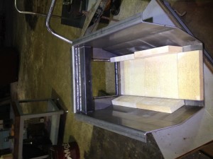 製作した扉を、プレヒート機能が付いた前面部分へ取り付ければ製作の山場は超えた事になる。扉を前面部分へ溶接するヒンジ部分が傾いていると、なめらかな開閉が出来ない、扉を開けると扉が斜めに開くなど、悪い事ばかりなので仕上げには気をつかう。